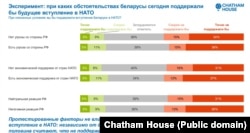 — Вы ў апытаньні таксама задалі шэраг пражэктыўных пытаньняў — ці варта Беларусі ўступіць у NATO пры розных умовах (ёсьць эканамічная падтрымка з боку Захаду ці няма, Расея супраць Беларусі ў NATO ці ня супраць). І дзіўна, што гэтыя ўмовы ніяк не ўплывалі на выбар. Пра што гэта сьведчыць?